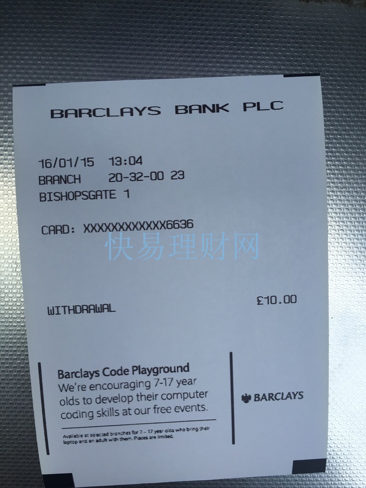 2017年1月,在巴克莱银行的ATM机使用成都银行金卡取现成功